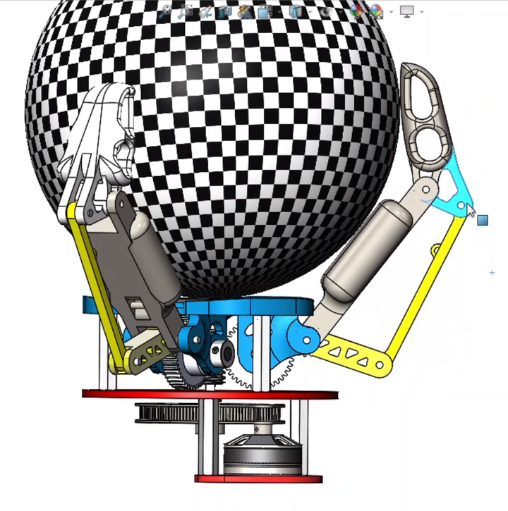 3-finger gripper mechanism with centralized actuation.This page contains a collection of projects on robot control and mechanism design that I have worked on throughout my graduate studies at the University of Texas at Austin. The first project is a 3-finger gripper mechanism with centralized actuation designed to be a lightweight end-effector for robotic arms or drone payload.