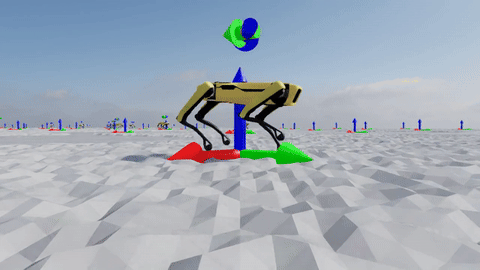 The goal was to have Spot stand and move on its hind legs with the front legs elevated — and the policy achieves exactly that. Spot bounces on both hind legs as it locomotes, with compensatory movements from the front legs to maintain balance.